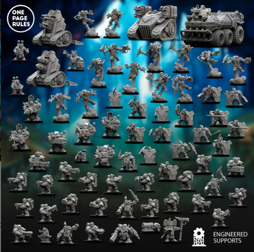 If I were starting over with this army, I would use exclusively Mantic figures and vehicles, but those weren’t available back when I started. Or I would go with OnePageRules’ figures (which are very nice). I could, of course, just use the GW Votann figures, but I want my Space Dwarves to be different from them–more about that in the Background section below.