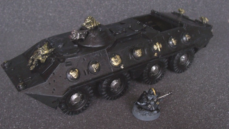 When I originally conceived of the army, I wanted nice, sturdy Battlewagons to get my proxied Orks into the fight. But what to use for models? Ork vehicles look too…well, Orky, and Imperial vehicles look…well, too human.