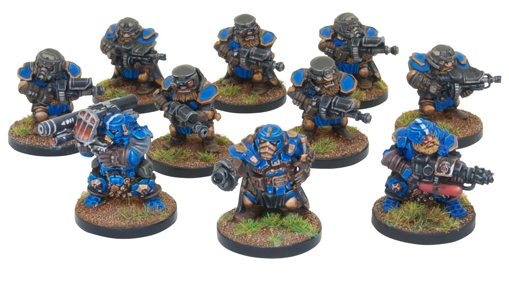 I also added some figures from Reaper Miniatures for leaders and elite units, and I was happy with what I had. “Happy,” that is, until I saw what Mantic Games had done with “Space Dwarves.”